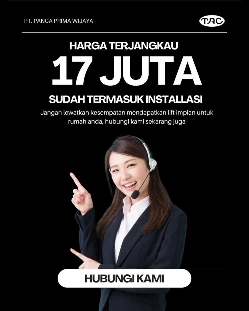 PT Panca Prima Wijaya menghadirkan lift kecil berteknologi Jepang dengan harga mulai Rp 170 juta. Dirancang untuk ruko 2–4 lantai, apartemen mini, atau rumah pribadi, lift ini hemat ruang, hemat energi, dan mudah dipasang.